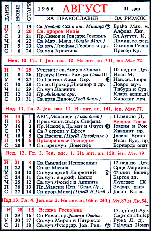 Lista u vrhu strane prikazuje odabranu godinu i par susednih.
