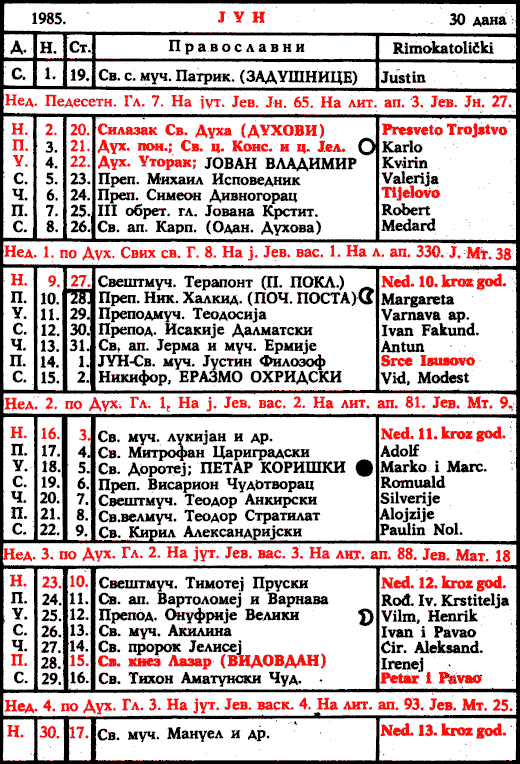 Lista u vrhu strane prikazuje odabranu godinu i par susednih.
