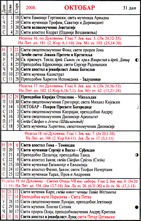 Lista u vrhu strane prikazuje odabranu godinu i par susednih.